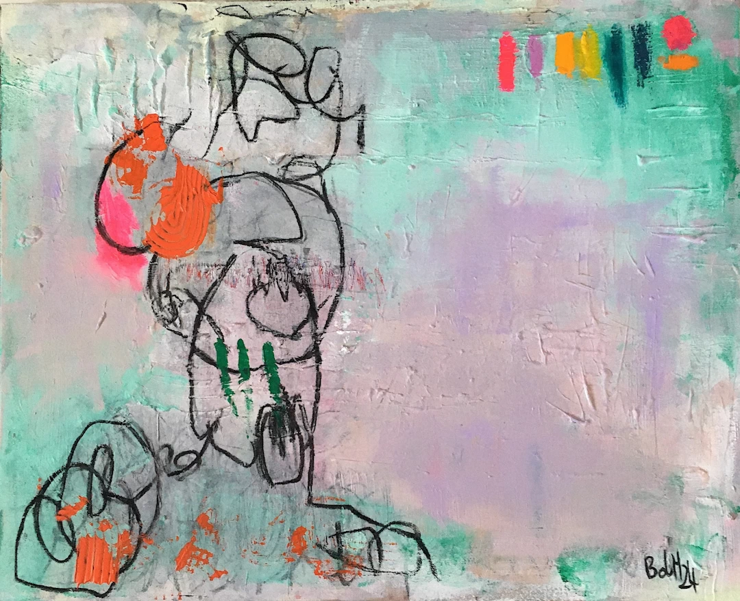 Acryl, Ölpastell, Sand auf Leinwand